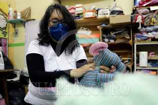 PUEBLA, PUEBLA, 18ENERO2021.- La empresa Entrapando confecciona muñecos de trapo a partir de prendas para mantener el recuerdo de un ser querido fallecido, por lo que en medio de la contingencia por Covid-19 se ha vuelto una opción para mantener el vínculo emocional con los que han partido. FOTO: MIREYA NOVO/CUARTOSCURO.COM