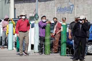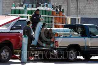 PUEBLA, PUEBLA, 18ENERO2021.- Incrementa compra de recarga de tanques de oxígeno en distribuidoras del parque industrial. La curva de contagios de Covid-19 sigue en aumento en Puebla tras las fiestas decembrinas. FOTO: MIREYA NOVO/CUARTOSCURO.COM