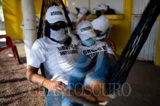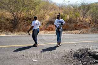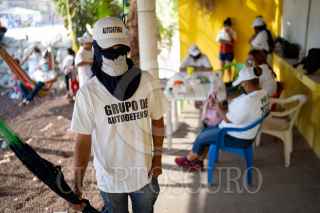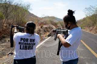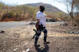BUENAVISTA TOMATLÁN, MICHOACÁN,18ENERO2021. En la comunidad de El Terrero, mujeres, jóvenes y niños han instalado barricadas al lado de la carretera, con la leyenda "Grupos de Autodefensa", para protegerse de las incursiones armadas que el Cártel Jalisco Nueva Generación realiza en la región de Tierra Caliente, según relataron. Hace una semana aun las armas las tenían a la vista, pero después de que el viernes pasado llegara la Guardia Nacional los intento desarmarlas, las mujeres decidieron no tenerlos a la vista, pero si tenerlas cerca por si se ocupan. Estos grupos reprochan al gobierno que no le brinde seguridad, pero que cuando intentan defenderse, entonces si les manden a la GN. FOTO: JUAN JOSÉ ESTRADA SERAFÍN/CUARTOSCURO.COM