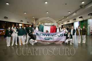CIUDAD DE MÉXICO, 18ENERO2021.- La Operación Chapultepec del Instituto Mexicano del Seguro Social (IMSS) se sigue fortaleciendo con la incorporación de un grupo de 13 trabajadores de la salud del estado de Nayarit, a fin de reforzar a los Equipos de Respuesta COVID que atienden la pandemia en la Ciudad de México, Zona Metropolitana del Valle de México y Baja California. Este lunes arribó al Aeropuerto Internacional de la Ciudad de México este personal de salud proveniente de los Hospitales Generales de Zona No. 1, 8, 10 y 33, del estado de Nayarit. La semana pasada otro grupo de 17 personas proveniente de Chiapas también se incorporó a la Operación Chapultepec. El desplazamiento de personal médico y de enfermería de casi todas las entidades del país se lleva a cabo desde el 23 de diciembre, cuando más de 600 profesionales de la salud atendieron el llamado que hizo el director general, Maestro Zoé Robledo, para reforzar la capacidad operativa de quienes durante más de 10 meses han atendido permanentemente esta pandemia. FOTO: IMSS/CUARTOSCURO.COM