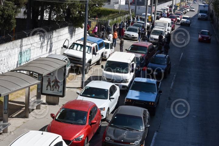 TOLUCA, ESTADO DE MÉXICO, 19ENERO2021.- Largas filas de personas y automóviles se observan en la sucursal de Infra ubicada en Paseo Tollocan para poder adquirir tanques de oxígeno y rellenar, algunos llegan desde las 4 de la mañana para alcanzar ficha, y esperan más de 4 horas para poder pasar, llevan de uno dos o tres tanques para sus pacientes con COVID-19; comentan que las sucursales a las que estaban acudiendo ya no les dan servicio y los mandan a la estación. FOTO: CRISANTA ESPINOSA AGUILAR /CUARTOSCURO.COM