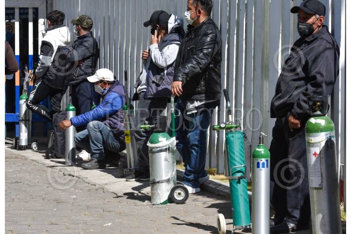 TOLUCA, ESTADO DE MÉXICO, 19ENERO2021.- Largas filas de personas y automóviles se observan en la sucursal de Infra ubicada en Paseo Tollocan para poder adquirir tanques de oxígeno y rellenar, algunos llegan desde las 4 de la mañana para alcanzar ficha, y esperan más de 4 horas para poder pasar, llevan de uno dos o tres tanques para sus pacientes con COVID-19; comentan que las sucursales a las que estaban acudiendo ya no les dan servicio y los mandan a la estación. FOTO: CRISANTA ESPINOSA AGUILAR /CUARTOSCURO.COM