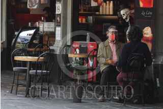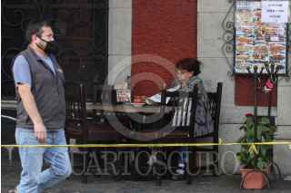 CIUDAD DE MÉXICO, 19ENERO2021.- Banquetas y arroyo vehicular ya forman parte de la extensión de restaurantes para poder brindar servicio bajo el semáforo rojo, esto luego de que dicho sector llegar a un acuerdo con la Jefatura de Gobierno, para retomar actividades comprometiéndose a mantener las medidas establecidas y brindar servicio únicamente al aire libre. FOTO: ROGELIO MORALES /CUARTOSCURO.COM