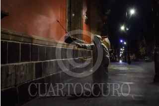 CIUDAD DE MÉXICO, 19ENERO2021.- Un trabajador realiza desinfección sobre la calle de Moneda en el Centro Histórico. FOTO: MARIO JASSO/CUARTOSCURO.COM
