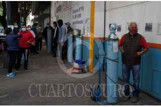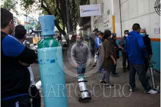 CIUDAD DE MÉXICO, 20ENERO2021.- Decenas de Personas acuden al Centro de llenado de tanques de oxígeno ubicado en la Colonia Escandón para rellenar y cambiar sus tanques. Esto ha tenido un alta demanda debido a la pandemia causada por el nuevo coronavirus que mantiene a la Ciudad en semáforo Rojo y con una ocupación hospitalaria de 89% según información de la Secretaría de Salud. FOTO: ANDREA MURCIA /CUARTOSCURO.COM