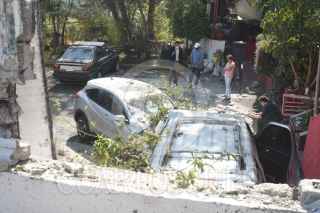 CIUDAD DE MÉXICO, 20ENERO2021.- Una camioneta impactó la barda de un domicilio y cayó varios metros sobre otro vehículo sin que se reportaran personas lesionadas, esto en la avenida 5 de Mayo y Centenario, en la alcaldía Álvaro Obregón. FOTO: CRISTIAN HERNÁNDEZ /CUARTOSCURO.COM