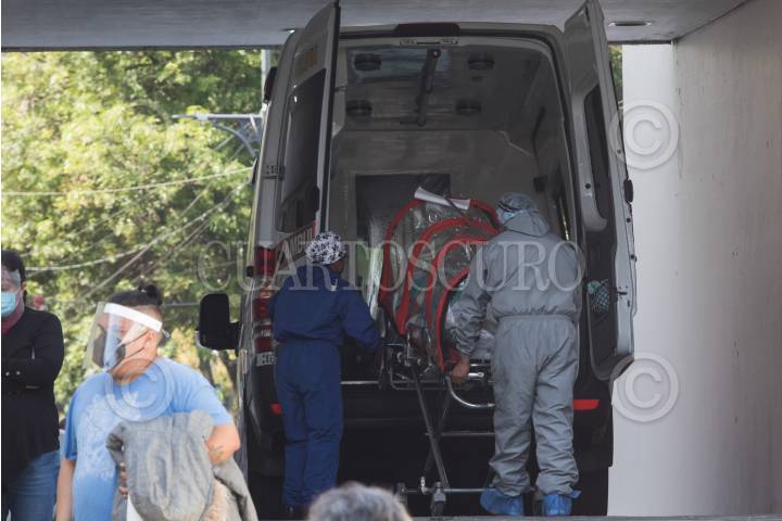 CIUDAD DE MÉXICO, 20ENERO2021.- En el Hospital de los Venados IMSS continúan llegando ambulancias con pacientes en cápsulas al área de urgencias Covid-19, en el lapso de una hora llegaron tres traslados. La capacidad hospitalaria en la capital continúa rozando el 90%, tanto para atención general, como para pacientes con SARS-CoV-2. Mientras tanto familiares esperan afuera del nosocomio en espera de noticias de sus seres queridos. FOTO: MOISÉS PABLO/CUARTOSCURO.COM