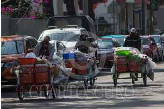 CIUDAD DE MÉXICO, 20ENERO2021.- Vendedores de pan y cafe regresan a casa tras terminar su jornada matutina, en la alcaldía Benito Juárez. FOTO: MOISÉS PABLO/CUARTOSCURO.COM