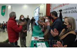 CHIHUAHUA, CHIHUAHUA, 20ENERO2021.- Graciela Ortiz González se registró ante la Comisión Estatal de Procesos Internos (CEPI) del Partido Revolucionario Institucional (PRI), como precandidata a la gubernatura de Chihuahua, en un acto en el que afirmó que le anima una profunda convicción de que hay que trabajar con decisión inquebrantable. FOTO: PARTIDO REVOLUCIONARIO INSTITUCIONAL /CUARTOSCURO.COM
