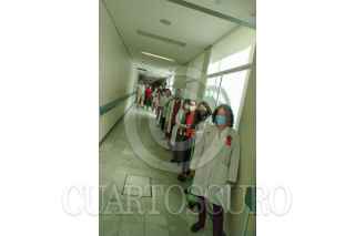 TOLUCA, ESTADO DE MÉXICO, 20ENERO2021.- Personal del Hospital Materno Perinatal “Mónica Pretelini” en la ciudad de Toluca denunció a través de sus redes sociales fueron retenidos durante varias horas, cerrando puertas con cuerdas mientras se llevaba a cabo la visita del Gobernador Alfredo del Mazo Maza, y evitar se realizarán diversas denuncias sobre irregularidades en la vacunación contra COVID-19 al personal médico. FOTO: ESPECIAL /CUARTOSCURO.COM