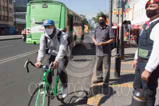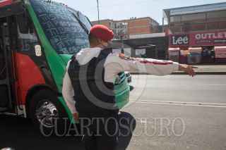 CIUDAD DE MÉXICO 21ENERO2021.- Policías del transporte, vigilan el servicio de microbuses quienes se encuentran brindando servicio en la linea 1 del metro; que a decir de las autoridades, reiniciara el próximo lunes el servicio. FOTO: VICTORIA VALTIERRA/CUARTOSCURO.COM