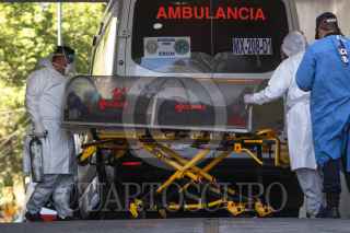 CIUDAD DE MÉXICO, 21ENERO2021.- El día de ayer vivió México reportó el segun día más letal de defunciones por Covid-19, al reportar 1,539 muertes por esta enfermedad. Mientras que la capacidad hospitalaria en la capital roza el 90%, en la llamada megalópolis ya rebasa esta cifra con un 92%, para atención a pacientes graves con SARS-CoV-2 que requieren ser conectados a un respirador artificial. En el Hospital de los Venados IMSS continúan llegando ambulancias con pacientes con síntomas de Coronavirus trasladados en cápsulas. Mientras que en las inmediaciones del área de urgencias de este nosocomio familias que esperan buenas noticias del estado de salud de sus seres queridos no siempre las reciben. FOTO: MOISÉS PABLO/CUARTOSCURO.COM