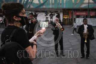 CIUDAD DE MÉXICO, 19ENERO2021.- El día de hoy se celebra el Día Internacional del Mariachi declarado en 2011 por la Organización de las Naciones Unidas para la Educación, la Ciencia y la Cultura (UNESCO). Músicos en la Plaza Garibaldi, celebrando su día trabajando con las medidas sanitarias recomendadas y bajo el semáforo rojo. FOTO: ROGELIO MORALES /CUARTOSCURO.COM