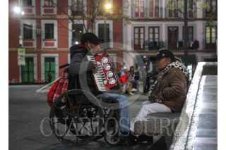 CIUDAD DE MÉXICO, 21ENERO2021.- Hombre invidente en silla de ruedas acompañado de su esposa cantan en la Plaza de Garibaldi en el marco de la celebración del Día del Mariachi. FOTO: ROGELIO MORALES /CUARTOSCURO.COM