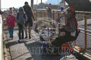 CIUDAD DE MÉXICO, 22ENERO2021.- Se mantienen las bajas temperaturas en gran parte de la ciudad, debido a la entrada del frente frío 30. En imagen una mujer junto a sus dos hijos cruzan un puente de la Carretera Federal a Cuernavaca durante las primeras horas de este viernes. FOTO: ROGELIO MORALES /CUARTOSCURO.COM