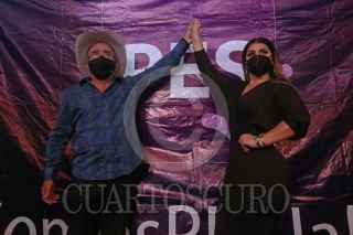 GUADALAJARA, JALISCO, 22ENERO2021.- El cantante Vicente Fernández Jr. y su pareja sentimental la modelo Mariana González, encabezaron una conferencia de prensa en un conocido restaurante de la ciudad, esto para dar a conocer que contenderán por una diputación local, por el distrito 20 y el distrito 3 respectivamente, en las próximas elecciones por el Partido Encuentro Solidario (PES). FOTO: FERNANDO CARRANZA GARCIA / CUARTOSCURO.COM