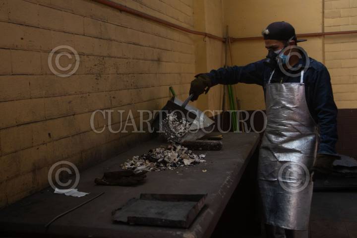NEZAHUALCÓYOTL, ESTADO DE MÉXICO, 22ENERO2021.- Juan Carlos Cruz, Marco Baltazar y Daniel Bustamante son trabajadores del Crematorio Municipal Nezahualcóyotl; reciben aproximadamente diez cuerpos de muertes por Covid-19 al día, dependiendo del peso del cuerpo se tarda la cremación que oscila entre dos y tres horas; los familiares esperan afuera y reciben las cenizas en urnas que les entregan los trabajadores. El Estado de México se mantendrá en semáforo rojo por Covid-19 durante la próxima semana del 25 al 31 de enero. Son más de 98 millones (98,086,978) de contagios por coronavirus en todo el mundo. FOTO: GRACIELA LÓPEZ/CUARTOSCURO.COM