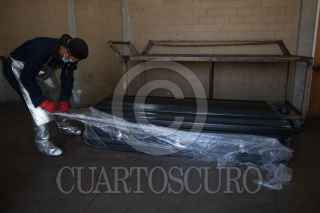NEZAHUALCÓYOTL, ESTADO DE MÉXICO, 22ENERO2021.- Juan Carlos Cruz, Marco Baltazar y Daniel Bustamante son trabajadores del Crematorio Municipal Nezahualcóyotl; reciben aproximadamente diez cuerpos de muertes por Covid-19 al día, dependiendo del peso del cuerpo se tarda la cremación que oscila entre dos y tres horas; los familiares esperan afuera y reciben las cenizas en urnas que les entregan los trabajadores. El Estado de México se mantendrá en semáforo rojo por Covid-19 durante la próxima semana del 25 al 31 de enero. Son más de 98 millones (98,086,978) de contagios por coronavirus en todo el mundo. FOTO: GRACIELA LÓPEZ/CUARTOSCURO.COM