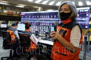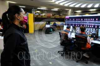 CIUDAD DE MÉXICO, 24ENERO2021.- Claudia Sheinbaum Pardo, jefa de Gobierno de la Ciudad; Andrés Lajous Loaeza y Florencia Serranía Soto, directora general del sistema de transporte Colectivo Metro (STM), durante recorrido en el Centro de Control del Sistema de Transporte Colectivo. FOTO: CUARTOSCURO.COM