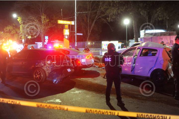 Ciudad de México, 25 enero 2021. Muere un hombre de la tercera edad a bordo de un auto compacto, tras ser impactado por un auto Seat León en el cruce de avenida Revolución y San Antonio de la colonia Nonoalco, en donde también se vieron afectadas una patrulla del sector Napoles y una camioneta Pick Up. El conductor fue detenido por su presunta responsabilidad en este accidente. Foto : Luis Carbayo/cuartoscuro.com