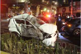 Ciudad de México, 25 enero 2021. Muere un hombre de la tercera edad a bordo de un auto compacto, tras ser impactado por un auto Seat León en el cruce de avenida Revolución y San Antonio de la colonia Nonoalco, en donde también se vieron afectadas una patrulla del sector Napoles y una camioneta Pick Up. El conductor fue detenido por su presunta responsabilidad en este accidente. Foto : Luis Carbayo/cuartoscuro.com