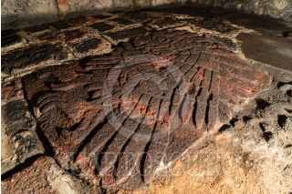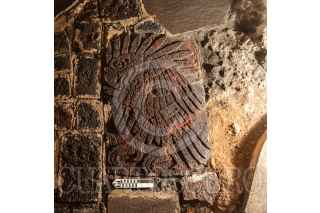 CIUDAD DE MÉXICO, 25ENERO2021.- Bajo el entrecruce de las calles de República de Guatemala y de Argentina, en el núcleo del palimpsesto urbano de la Ciudad de México, expertos del Proyecto Templo Mayor (PTM) del Instituto Nacional de Antropología e Historia (INAH) localizaron una antigua y finamente lograda expresión de la escultórica mexica: un bajorrelieve con la imagen de un águila real. Si bien fue en febrero de 2020 cuando un equipo multidisciplinario concluyó la liberación y la limpieza de esta itzcuauhtli, voz nahua que significa “águila de obsidiana”, y con la cual los mexicas se referían al águila real (Aquila chrysaetos canadensis), es ahora, cuando se ha profundizado su investigación en gabinete, que se da a conocer el hallazgo. Labrado sobre tezontle rojo y con dimensiones de 1.06 metros de largo por 70 centímetros de ancho, este bajorrelieve es el de mayor tamaño dentro de un conjunto de 67 elementos similares encontrados hasta el momento en el Templo Mayor. FOTO: INAH/CUARTOSCURO.COM