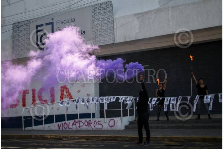 CIUDAD DE MÉXICO, 25ENERO2021. - Mujeres de distintas colectivas feministas realizaron un "tendedero de acosadores" frente a las instalaciones de la Fiscalía General de Justicia (FGJ). Durante la protesta realizaron pintas en exigencia a que se de seguimiento a sus denuncias por violacion y violencia. FOTO: ANDREA MURCIA /CUARTOSCURO.COM