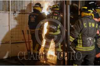 Ciudad de México, 26 enero 2021. Un incendio al parecer provocado por la delincuencia organizada, se registró en dos locales comerciales de la calle Fray Bartolomé de las Casa y Caridad en el corazón del Barrio de Tepito en la colonia Morelos. Bomberos laboraron por varios minutos tratando de abrir las fortalezas que resguardan estas bodegas. Foto: Luis Carbayo/cuartoscuro.com