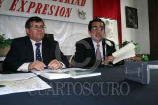 MÈXICO, D.F. 10JULIO2006.- Representantes del Instituto Politècnico Nacional: Manuel Servìn Massieu, Josè Humbertus Espinosa, Luis Niño de Rivera y Oyarzabal, en conferencia de prensa afirmaron que detrás de las elecciones hubo un fraude informativo y cibernético debido a la manipulación del padrón electoral por parte de Diego Hildebrando Zavala. FOTO: Paola Hidalgo/CUARTOSCURO.COM