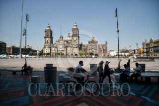 CIUDAD DE MÉXICO, 26ENERO2021.- El gobierno de la Ciudad amplio la zona peatonal del Zócalo Capitalino, con pintura inspirada de Tejidos Oaxaqueño, donde se colocó mobiliario urbano. También se ajusto la circulación de la Ciclovia. FOTO: ANDREA MURCIA /CUARTOSCURO.COM