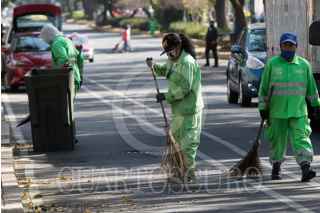 CIUDAD DE MÉXICO, 26ENERO2021.- Trabajadores de limpieza durante una jornada laboral en la avenida División del Norte. Este sector ha llamado a que sean considerados en la vacunación contra el Covid-19 de manera inmediata por el riesgo laboral que representa su trabajo. FOTO: MOISÉS PABLO/CUARTOSCURO.COM