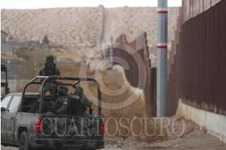 CIUDAD JUÁREZ, CHIHUAHUA, 26ENERO2021.- Con los trabajos de construcción de un nuevo bloque del muro fronterizo entre Sunland Park en New México y Ciudad Juárez,detienen la construcción los trabajadores estadounidenses que sustituye la malla metálica, en la cual se observan en la pared interior varios “parches” colocados por las autoridades estadounidenses con el mismo material. Aun con la vigilancia de la guardia nacional al borde del río bravo se siguen entregando a las CBP los centroamericanos que quieren cumplir su sueño americano. FOTO: NACHO RUIZ/CUARTOSCURO.COM