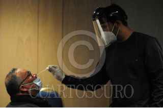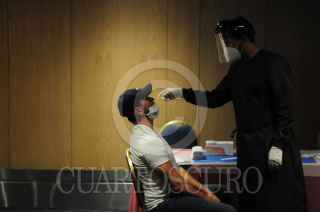 CIUDAD DE MÉXICO, 27ENERO2021.- El Aeropuerto Internacional de la Ciudad de México (AICM) comenzó la aplicación de las pruebas rápidas de detección de Covid-19 como medida de seguridad sanitaria para poder viajar a Estados Unidos. El resultado es solicitado al momento de acceder a la sala de espera de la aerolínea en cuestión. Dentro de los módulos instalados en el aeropuerto, están a disposición la prueba rápida de antígeno y la PCR con un costo de 700 y 2500 pesos respectivamente. FOTO: DANIEL AUGUSTO /CUARTOSCURO.COM