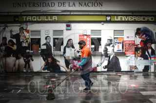 CIUDAD DE MÉXICO, 22ENERO2021.- Tras anunciar la reapertura de la línea 3 para el próximo 1 de febrero, trabajadores de limpieza del metro comienzan labores de limpieza. FOTO: ROGELIO MORALES /CUARTOSCURO.COM