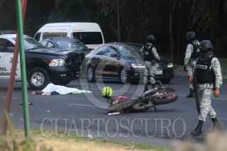 ATIZAPÁN DE ZARAGOZA, ESTADO DE MÉXICO, 27ENERO2021.- Un motociclista murió al derraparse sobre la avenida Adolfo López Mateos. Elementos de la policía municipal y de la Guardia Nacional resguardaron la zona del accidente. FOTO: ARMANDO MONROY /CUARTOSCURO.COM
