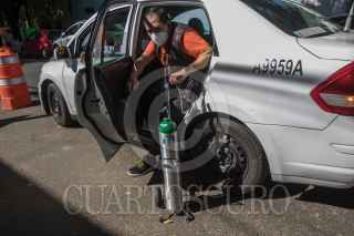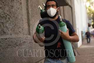 CIUDAD DE MÉXICO. 28ENERO2021.- familiares y cuidadores de pacientes de Covid 19, acuden a Infra, empresa que se dedica al relleno y venta de Oxígeno Medicinal, en la Calle Comercio de la Colonia; Escandón de la alcaldía de Miguel Hidalgo. FOTO: VICTORIA VALTIERRA/CUARTOSCURO.COM