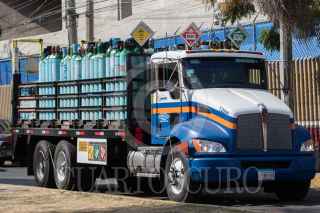 CIUDAD DE MÉXICO, 28ENERO2021.- Un camión de la empresa INFRA traslada tanques de oxígeno medicinal en el área de hospitales de la colonia Doctores. FOTO: MOISÉS PABLO/CUARTOSCURO.COM