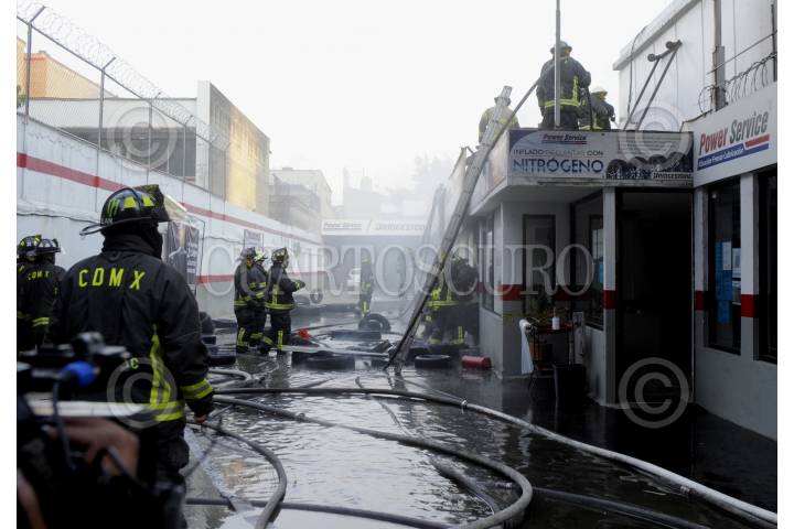 Ciudad de México, 28 enero 2021. Fuerte incendio se registró, en una Llantera ubicada en Mariano Escobedo casi con Laguna de Maytan en la colonia Anahuac, la rápida intervención de bomberos, logró que las llamas fueran controladas rápidamente. Foto : Luis Carbayo/cuartoscuro.com
