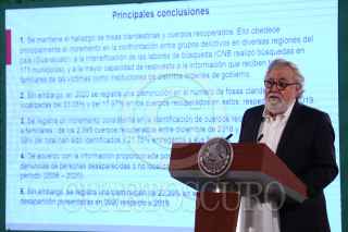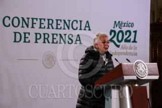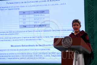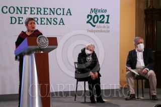 CIUDAD DE MÉXICO, 29ENERO2021.- Olga Sánchez Cordero, secretaria de Gobernación en representación del presidente Andrés Manuel López Obrador, encabezó la conferencia de prensa matutina junto con Alejandro Encinas, subsecretario de Derechos Humanos, y Karla Quintana Osuna, Comisionada Nacional de Búsqueda, informaron sobre la reducción en 22% de denuncias por desaparición en 2020, así como los trabajos en materia de búsqueda. FOTO: GALO CAÑAS/CUARTOSCURO.COM