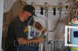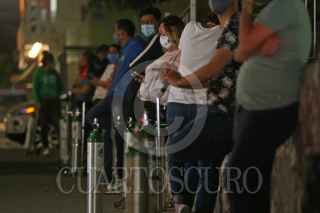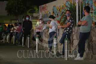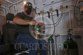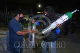 GUADALAJARA, JALISCO, 29ENERO2021.- A raíz de la pandemia sanitaria por Covid-19, el incremento de los precios del oxigeno medicinal a causa de la demanda del mismo fue exagerado, ya que podría estar involucrada la delincuencia en un mercado negro. Oxigeno en Ruedas es un grupo de personas que sin fin de lucro apoyan a familiares de personas contagiadas por el virus del SARS-CoV-2 y por medio de una camioneta equipada realizan el relleno del vital elemento a bajo costo hasta la comodidad de sus colonias, dicha acción comenzó el pasado lunes y seguirá realizándose durante las noches posteriores. FOTO: FERNANDO CARRANZA GARCIA / CUARTOSCURO.COM