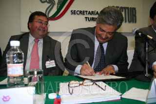 MÈXICO, D.F. 11JULIO2006.- El secretario de Turismo, Rodolfo Elizondo Torres, secretario de turismo se reuniò con representantes de la zona Maya, Ricardo Martinez, ministro de turismo de Honduras, Daniel Mooney, director del instututo de turismo de Guatemala, con el objetivo de activar estas zonas turìsticas. FOTO: Paola Hidalgo/CUARTOSCURO.COM