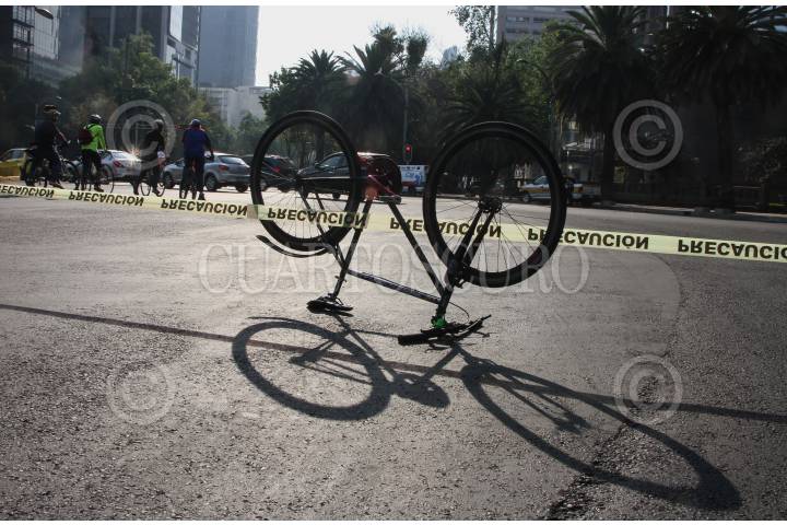 CIUDAD DE MÉXICO, 29ENERO2021.- Un grupo de ciclistas se manifestaron cerrando carriles en ambos sentidos de la Avenida Paseo de la Reforma, los inconformes exigen a las autoridades de la Secretaría de Movilidad, justicia para el ciclista Carlos Rivera quien falleció luego de ser atropellado en vía pública y así mismo por dos ciclistas involucrados en accidentes viales. FOTO: ROGELIO MORALES /CUARTOSCURO.COM
