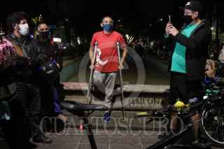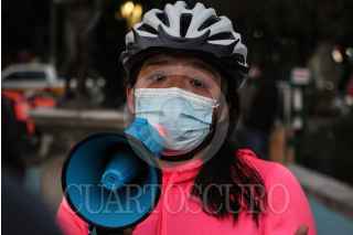 CIUDAD DE MÉXICO, 29ENERO2021.- Mario Trejo, ciclista atropellado que perdió la pierna el año pasado y Michel Gómez, esposa de Carlos Rivera ciclista que perdió la vida al ser atropellado en la Calzada Tlalpan, acompañados de decenas de ciclistas se manifestaron en la isla de Avenida Insurgentes y Álvaro Obregón, para exigir a las autoridades de la Secretaria de Movilidad, una acción inmediata a los casos de ciclistas atropellados así como un protocolo de atención para accidentes en donde estén involucrados ciclistas. FOTO: ROGELIO MORALES /CUARTOSCURO.COM