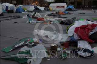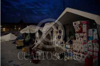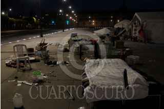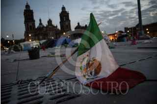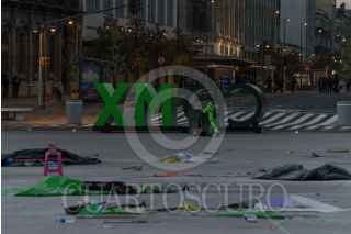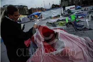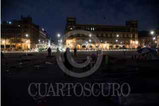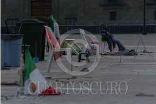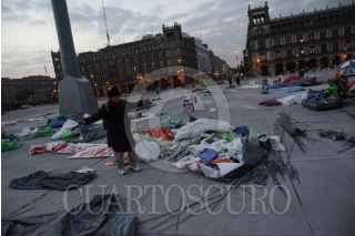 CIUDAD DE MÉXICO, 30ENERO2021.- Personal de limpia de la capital del país retiraron más de cien casas de campañas del campamento de Frena en la plancha del Zócalo capitalino, ésto como medida sanitaria y de seguridad de acuerdo a la Secretaría de Gobierno de la Ciudad de México (SecGob). Integrantes del campamento demandaron que el personal irrumpió de forma agresiva por lo que respondieron con lo que tenían a la mano. FOTO: MARIO JASSO/CUARTOSCURO.COM