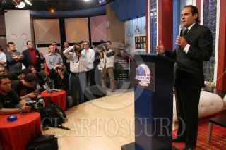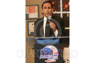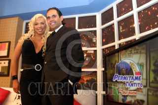 MEXICO, D.F., 11JULIO2006.- Vanessa, la "Vecina e Israel Jaitovich, ofrecieron una conferencia de prensa para anunciar la salida del aire del programa Permitame Tantito, depués de tres años de transmisión por el canal 4. FOTO: Moisés Pablo/CUARTOSCURO.COM