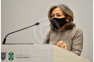 CIUDAD DE MÉXICO, 30ENERO2021.- Florencia Serranía, directora general del Sistema de Transporte Colectivo Metro y Andrés Lajous, secretario de Movilidad, durante la conferencia de prensa de movilidad integrada en donde se dio a conocer que la reapertura de la Línea 3 del metro que corre de Ciudad Universitaria a Indios Verdes, será bajo el horario de día festivo. FOTO:GOBIERNO DE LA CIUDAD DE MÉXICO /CUARTOSCURO.COM