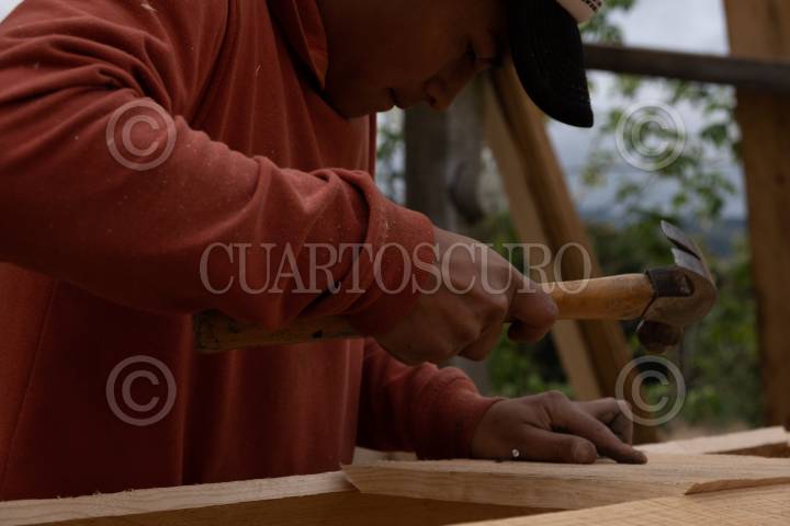 SAN JUAN CHAMULA, CHIAPAS, 31ENERO2021.- La fabrica de ataúdes Rosales lleva más de tres generaciones trabajando en la construcción de ataúdes de madera desde 900 pesos hasta más de 20 mil. Ellos producen ataúdes para la gente de la comunidad de San Juan Chamula y para algunas funerarias de San Cristóbal de las Casas, Tuxtla Gutiérrez, Comitán, San Andrés Larráinzar entre otras. Comenta José Rosales dueño de la fábrica que su padre le enseñó el oficio y el asu vez se lo mostró a su hijo William quien atiende el negocio y también fabrica ataúdes junto con su amigo de infancia Daniel, son encargados de la fabricación principalmente, cuando el trabajo aumenta contratan a más ayudantes, mencionaron que a raíz de la pandemia por Covid 19, la venta en la ciudades grandes del estado aumentaron considerablemente. FOTO: ISABEL MATEOS /CUARTOSCURO.COM