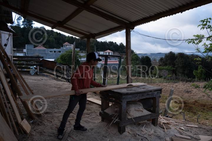 SAN JUAN CHAMULA, CHIAPAS, 31ENERO2021.- La fabrica de ataúdes Rosales lleva más de tres generaciones trabajando en la construcción de ataúdes de madera desde 900 pesos hasta más de 20 mil. Ellos producen ataúdes para la gente de la comunidad de San Juan Chamula y para algunas funerarias de San Cristóbal de las Casas, Tuxtla Gutiérrez, Comitán, San Andrés Larráinzar entre otras. Comenta José Rosales dueño de la fábrica que su padre le enseñó el oficio y el asu vez se lo mostró a su hijo William quien atiende el negocio y también fabrica ataúdes junto con su amigo de infancia Daniel, son encargados de la fabricación principalmente, cuando el trabajo aumenta contratan a más ayudantes, mencionaron que a raíz de la pandemia por Covid 19, la venta en la ciudades grandes del estado aumentaron considerablemente. FOTO: ISABEL MATEOS /CUARTOSCURO.COM