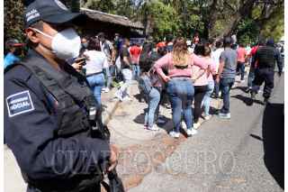 CUERNAVACA, MORELOS, 31ENERO2021.- Decenas de personas pretendían que se les dejara votar en las elecciones internas del Partido Acción Nacional, para designar candidato a la presidencia municipal y diputado federal, sin embargo, por no respetar medidas de sanidad durante el semáforo rojo en que se encuentra la entidad, Protección Civil, clausura el centro de votación que se instaló. Además, las personas que pretendía votar no pudieron comprobar que son militantes del PAN, por lo que se les pidió que se retiraran. FOTO: MARGARITO PÉREZ RETANA /CUARTOSCURO.COM