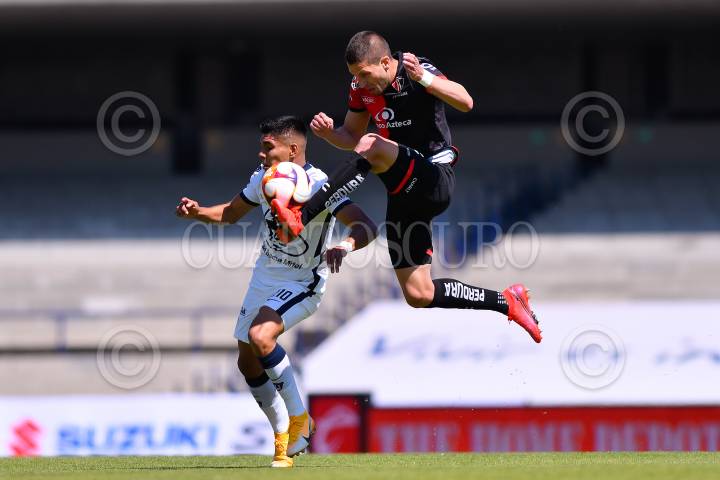 CIUDAD DE MÉXICO, 31ENERO2021.- Los Pumas de la UNAM empataron a cero goles con el Atlas, en partido correspondiente a la jornada 4 del torneo Guard1anes Clausura 2021, de la Liga BBVA MX. El encuentro fue a puerta cerrada en el Estadio Olímpico. FOTO: LIGA MX/IMAGO 7/CUARTOSCURO.COM